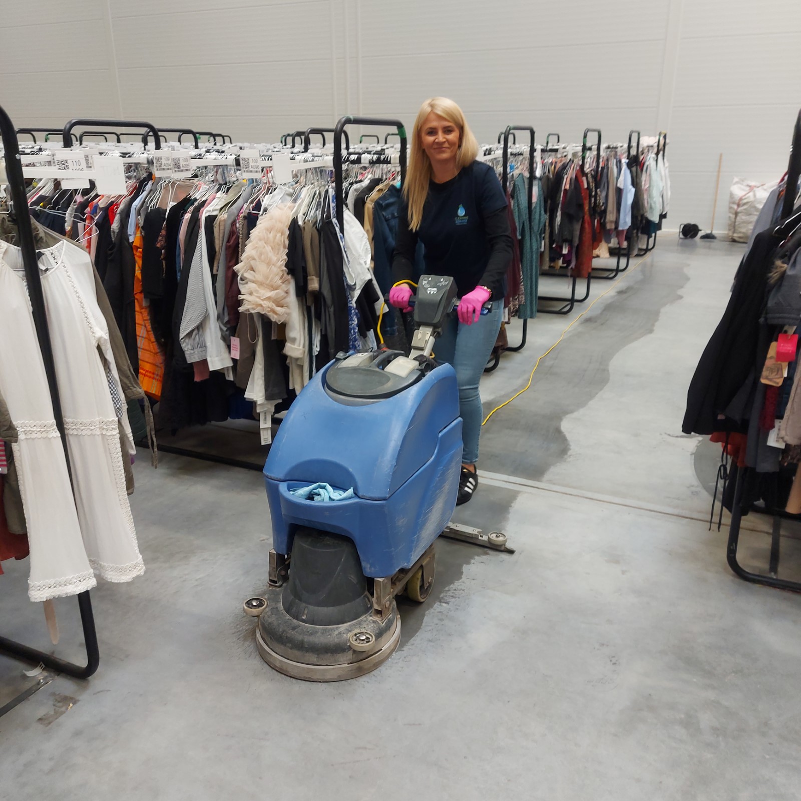 - mycie podłóg profesjonalnymi szorowarkami przemysłowymi oraz odpowiednimi środkami chemicznymi