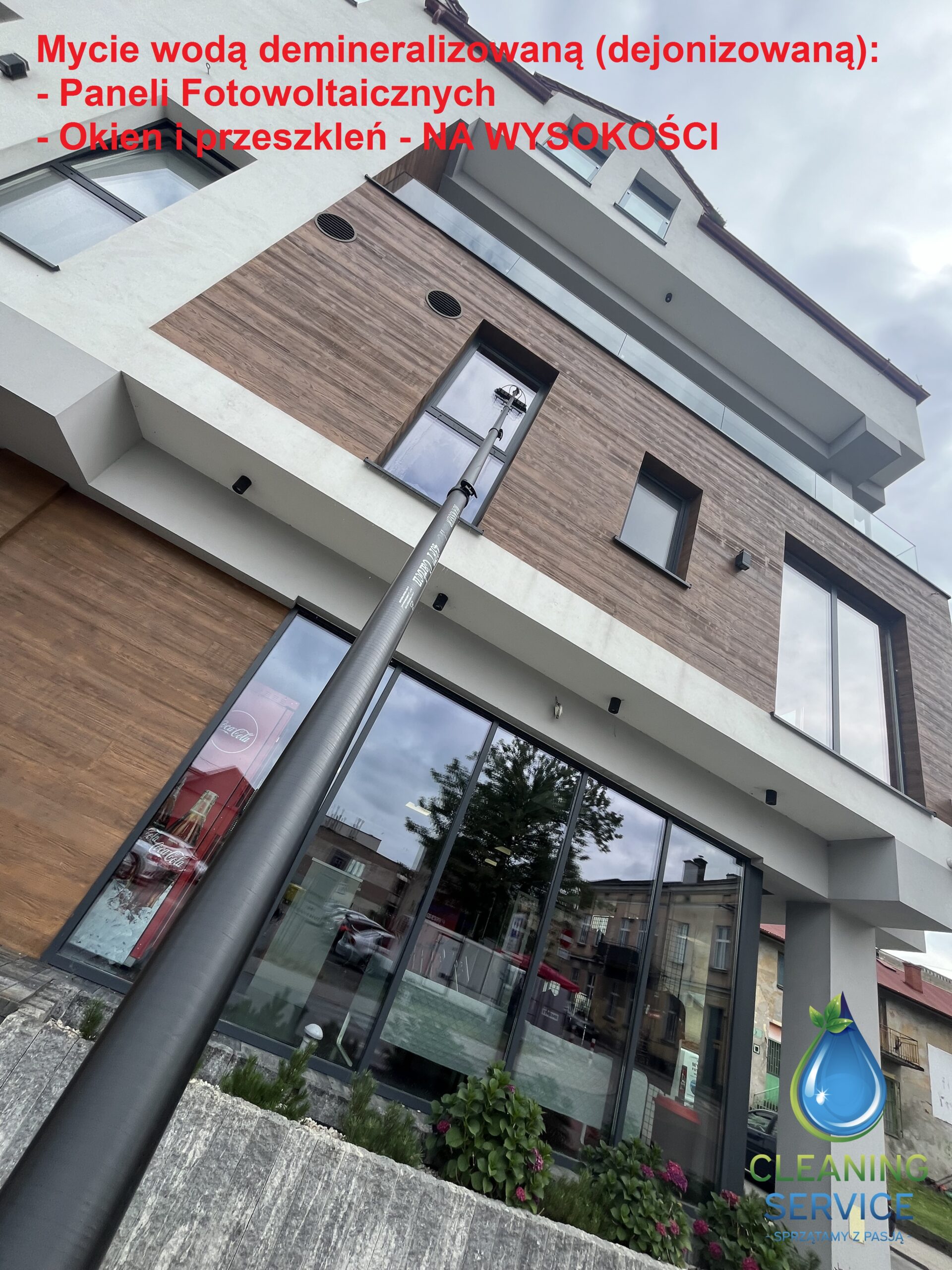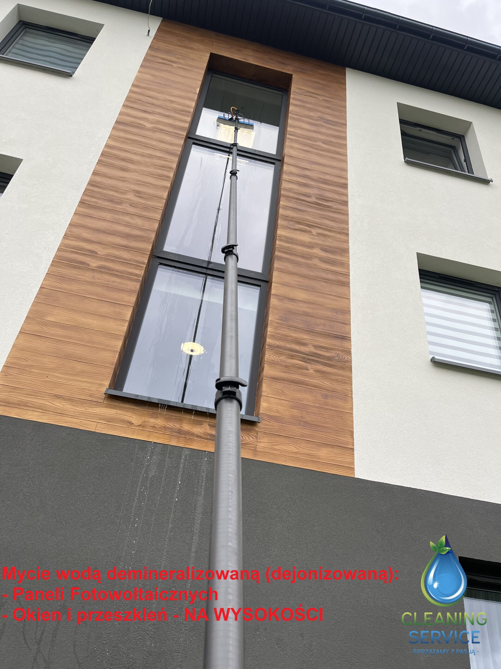 - mycie wodą demineralizowaną (dejonizowaną) okien i przeszkleń na wysokości