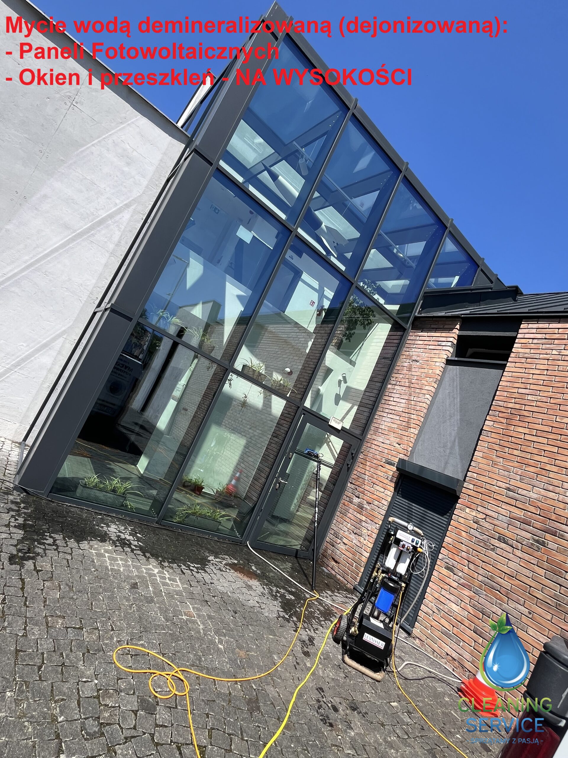 – Okien i przeszkleń wodą demineralizowaną (dejonizowaną) – na wysokości.